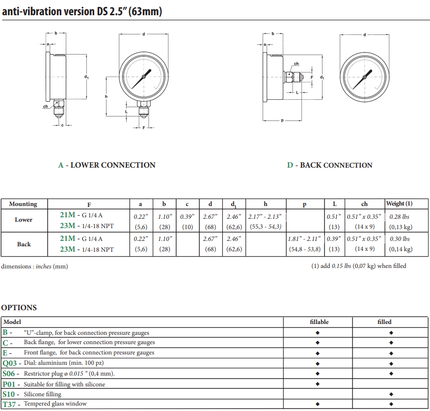 Produktcode (SKU): TM63RL 1/4” (0-4)bar